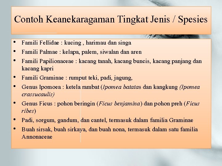 . Jadi keanekaragaman spesies dimulai dari tingkat genus sampai pada tingkat kingdom. Jambu air Eugenia aqua cengkeh Eugenia aromatica duwet Eugenia cumini. Kelompok tumbuhan di bawah iniyang merupakan keanekaragaman tingkat jenis dalam satu genus adalah.